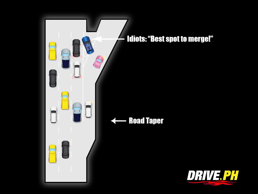 The problem then is when they force to merge back into the proper lane, causing a gridlock. Since these cretins who use the taper lanes to overtake carry their entitlement even when merging, they simply just force their way into the proper lane. And people don’t even practice zipper merging where cars in merging lanes ideally alternate. So the traffic just piles on.